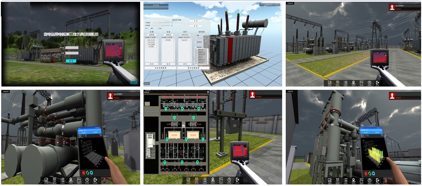 以變電站帶電檢測科目為仿真對象,將高壓試驗置于一全三維仿真變電站環(huán)境中,對儀器設備的外形及功能進行全方位模擬,實現(xiàn)在三維虛擬變電站環(huán)境中進行高壓試驗的過程仿真。系統(tǒng)設計故障設置功能模塊,通過設置故障來對學員進行測試考核,檢驗學員對儀器設備的操作熟練程度以及對測量結果分析的正確性,實現(xiàn)對學員的考核評定與技能鑒定。具備紅外測溫檢測、特高頻檢測、超聲波檢測、暫態(tài)地電壓檢測、開關柜的超聲波、暫態(tài)地電壓局放檢測、GIS特高頻和超聲波檢測。